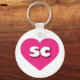 Esse chaveiro apresenta um coração rosa-quente, em forma e vibrante, contendo as letras maiúsculas em negrito, arredondada, branca, sc, uma versão lúdica da abreviação para a Carolina do Sul, o estado do palmetto.