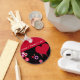 Coração vermelho com círculos fungos. Texto personalizável e cor de fundo.
