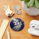 Este legal chaveiro do tema basquete apresenta a imagem de uma bola de basquete realista com painéis coloridos alternados azuis e cinzas - facilmente personalizados com o nome da escola, o nome do mascote e o nome do jogador & número de camisa - por katz_d_zynes