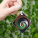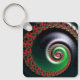 Este trabalho apresenta um padrão fractal robusto e complexo com uma estrutura espiral que parece estender-se infinitamente para dentro. As cores primárias são vermelho vívido e verde esbranquiçado, contrastando com um fundo escuro e profundo. Ao longo do caminho da espiral, formas frtais intrincadas e menores repetem-se, criando uma sensação de profundidade e movimento. Os elementos fractais vermelhos parecem formas orgânicas, quase como flores florescentes ou folhas enroladas. Os tons verdes gradualmente transitam para as brancas prateadas mais perto do centro, adicionando um efeito brilhante. No geral, a imagem evoca um sentimento de infinita complexidade e energia dinâmica.