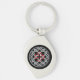 Uma corrente chave com um design Celtic knot com uma cruz quadrada vermelha no centro.