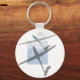 Cadeia de teclas com planador de cinzas, imagem de fundo azul e sombra