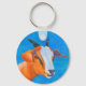 Esta cadeia-chave apresenta uma cabra de cor brilhante.