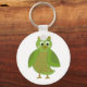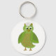 Um chaveiro excelente para o amante da coruja. Coruja de desenho com olhos grandes e corpo verde e asas.