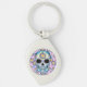 O crânio do açúcar projetou matiz do azul e o rosa é cercado de flores e cor coloridos.