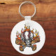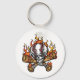 Um crânio de beisebol em chamas com bolas de baseball e chamas. Esta design parece realmente eficaz nestes Chaveiro
