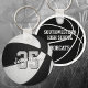 Este legal chaveiro do tema de basquete apresenta a imagem realista de uma bola de basquete que tem painéis coloridos em preto e branco alternados na frente e uma simples forma de basquete preto no verso - personalize facilmente com o nome do jogador & número de camisa na frente e na escola ou nome do clube e nome do mascote no verso - por katz_d_zynes