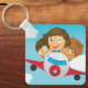 Um gráfico divertido de algumas crianças voando num avião. Esta design parece realmente eficaz nesta Chaveiro