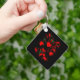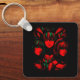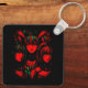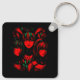 Three cybernetic young women with glowing green eyes emerge from shadow in a striking red-and-black futuristic portrait of unity and rebellion.