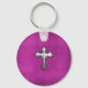 Chaveiro Cruz de metal em couro rosa