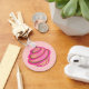 Um cupcake cor-de-rosa vibrante decora este chaveiro. O design é de uma aquarela original.