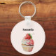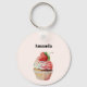 Um chaveiro com uma ilustração brilhante com um cupcake delicioso. Sorvete branco e um morango grande adoram este doce doce doce.
