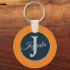 Modern custom orange Light greay ocean blue Monogram keychain.