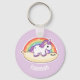 Um unicórnio bebê roxo super fofo andando numa banana feliz sob um arco-íris brilhante. Personalize com seu nome.