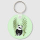 Brilhe seu dia com esta chaveiro. Ele apresenta um lindo panda preto e branco felpudo sentado entre caules de plantas verdes de bambu. Você pode mudar a cor de fundo para o que lhe convém.