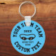 Chaveiro da equipe de natação personalizada para nadadores. Adicione seu próprio texto personalizado. Design moderno com logotipo de óculos de natação ou ícone personalizado. Fundo de cor da piscina azul.