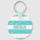 Trendy e divertida Chaveiro de Olhar Stripes de Sparkle. Este design apresenta um padrão de risca de aparência brilhante e falsa em turquesa. Adicione texto a este design para lhe dar um toque pessoal.
