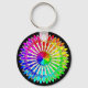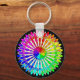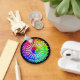 Roda falsa em um padrão espiralante de cor do arco-íris em um fundo bege.