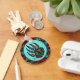 Este é um único "Um dos tipos" Chaveiro de Paw de Urso Tribal do Sudoeste! Ela apresenta uma pata nativa americana tribal do urso, que representa proteção e boa saúde em um fundo turquesa... cercado por uma tartaruga sudoeste, borda laranja e negra! Este é um Design de Arte Gráfica Original do Artista Kerry Miller.