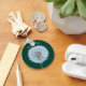 Este chaveiro ou teclado está pronto para ser personalizado com um nome ou outro texto. Ele apresenta uma foto de uma flor de dandelion (ok, tecnicamente uma erva daninha) ou um relógio de dandelion contra um fundo verde escuro. Seu nome está acima em verde limão.