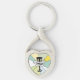 Cadeia de chave personalizada para um casal. Ele tem o tema do golfe de disco e o fundo de pop de arte lacrimejante e amarelo. Bonito presente para recém casados que gostam de jogar golfe.