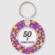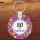 "50 e Fabuloso" 50º chaveiro de aniversário. As cores de texto roxo e preto podem ser alteradas para ajustado de sua preferência. O lindo padrão floral subjacente fará o receptor sorrir toda vez que ela olha para ele!