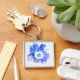 Impressão floral de fluido solto no estilo desenhado pela mão de aquarela moderna. Impressão de flor moderna, cor azul escura e colorida, num fundo branco. Na tendência do design floral moderno.