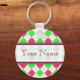 Um chaveiro com um fundo rosa-quente e um fundo de argilo de verde limão com um caimento rosa-quente. Personalize com seu nome na seção central.