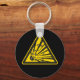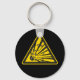 Chaveiro preto com sinal de aviso de explosivo amarelo e preto.