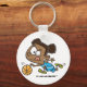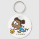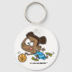 Uma garota jogando basquete com um olhar de concentração no rosto. Esta design parece realmente eficaz nesta Chaveiro