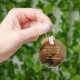 Uma chaveiro com uma fotografia de pés de bebês com uma citação inspiradora