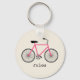 Um chaveiro com ilustração de uma bicicleta rosa-quente. Personalize com seu nome em bicicleta.
