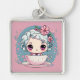 Uma boneca do estilo kawaii adorável sentada numa xícara de chá. Design perfeito para crianças e adultos em muitos produtos de moda! Personalize sua cor de fundo ou adicione texto!