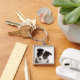 Olha para aquele rosto! Quem pode resistir ao rosto de um filhote de Border Collie? Este chaveiro bonito apresenta um retrato de um Collie de borda preto-e-branco realçado sobre um fundo branco nítido. Toda vez que você usa suas chaves, este doce cachorrinho estará esperando por você com muito amor.