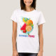 Pessegueiro de design de banana de morango de laranja com fundo de onda no mar com escrevendo da hora de verão e eu acho que você pode começar seu verão com esta camiseta