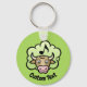 Um desenho animado de vaca. Cor de fundo personalizada. Texto personalizado de ambos os lados.