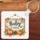 Um charmoso chaveiro de outono para lembrar os convidados do seu chá de fraldas especial. Apresentando abóboras, decor em áreas florestais, e "Baby is Coming", é uma manutenção prática que eles vão tesourar.