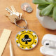 Chaveiro de chip de pôquer de casino amarelo com nome ou valor personalizado. Design de moeda com marcador de casino divertido com ícone de trevo. Cores personalizáveis. Exemplo amarelo e preto. Personalizar com o nome, o monograma, as iniciais, o valor em dólares, a denominação ou o número de sorte. Tipografia de script. Também excelente como favores à festa de casamento.
