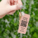 Chaveiro de código QR personalizado. Cor de fundo personalizada (use uma cor clara). Texto personalizado de ambos os lados.