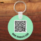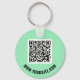 Chaveiro de código QR personalizado. Cor de fundo personalizada. Texto personalizado de ambos os lados.