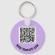 Chaveiro de código QR personalizado. Cor de fundo personalizada. Texto personalizado.