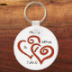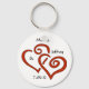Red Entwined Hearts Chaveiro, em fundo branco com texto personalizável, incluindo data. Faz um favor de casamento excelente!
