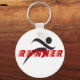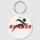 Este teclado tem a palavra corredor que parece que o vento está soprando através dele com uma silhueta de uma pessoa correndo no fundo.