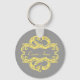 O Chaveiro elegante e sofisticado para o Damasco Chic, com fundo de cinza macio e um na moda damask, floresce em amarelo. Esta design moderna é fácil de personalizar com o seu próprio texto. Clique em "Personalizar" para encontrar mais opções de personalização.