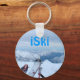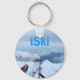 Corrente chave com aspecto de excelente, com muita neve nas montanhas e as pontas de esquis de neve mostrando na parte inferior. O texto lê iSki e pode ser mudado para ler o que você quiser. Excelente para qualquer esquiador de neve.