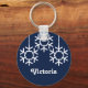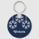 Chaveiro de Natal simples e quente com flocos de neve apresentando um trio de flocos de neve modernos e elegantes. Este chaveiro de Natal faz um presente de na moda ou um gatilho de estoque. Personalize este design em floco de neve com seu próprio texto personalizado.