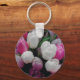 Chaveiro de fotos personalizadas das flores das tulipas. Fotografia do buquê das flores de tulipa rosa e branca. Bela ideia de presente para florista ou florista. Faça sua própria corrente com design floral.