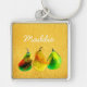Pera aquosa, cor branca, em cores verdes e amarelas. Engraçado e brilhante. Linda ilustração original de arte fruta.