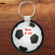 Este chaveiro apresenta uma imagem de uma bola de futebol. Uma fina borda preta rodeia a bola. Dentro a bola é um ponto personalizado para colocar seu nome ou mensagem.