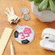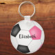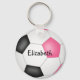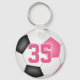 Este chaveiro de futebol giro apresenta um gráfico simples de bola de futebol com painéis cor-de-rosa, pretos e brancos - personaliza facilmente o chaveiro com o nome do jogador numa letra de assinatura (ou autógrafo) no topo do número de camisa do jogador (numa letra de estilo varsity) - por katz_d_zynes